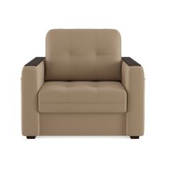 Для комфортного отдыха имеет маятниковый механизм , который выполняет классическую функцию покачивания, при этом она не оставляет вмятин на напольном покрытие. Кресло обтянуто искусственной кожей, смотрится современно и стильно, каркас-дерево, боковины выполнены в виде криволинейных деталей, образующих ножки-опоры, материал боковины фанера. На боковинах имеются мягкие подлокотники.